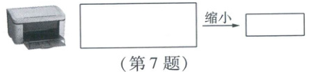 7. 如图,老师利用复印机将一张长为20cm,宽为8cm的矩形的数学检测卷等比例缩小,其中缩小后的长为10cm,则缩小后的矩形面积为(