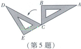 5. 如图,小聪将三角尺ABC绕点C按逆时针方向旋转到△DEC的位置,其中∠A为30°,∠B为直角,若点A,C,E在一条直线上,则此次旋转变换中旋转角的度数为(
