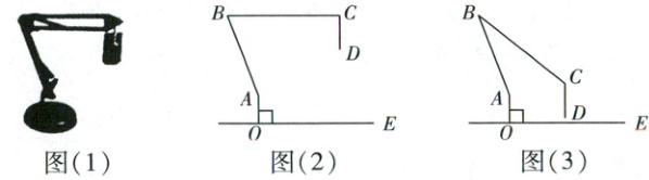 (1) 如图(2),当BC//OE时,∠ABC=70°,求投影探头的端点D到桌面OE的距离.