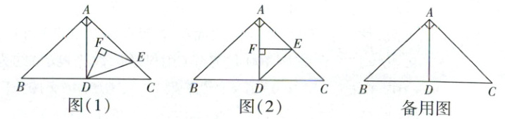 如图(1),在△ABC中,AB=AC,∠BAC=90°,BC=16.过点A作AD⊥BC于点D,E为腰AC上一动点,连接DE,以DE为斜边向左上方作等腰直角三角形DEF.