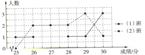 a. 如图为(1)班、(2)班各抽取的10名学生的体育测试成绩的频数分布折线图:
