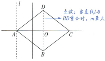 15. 如图,四边形$ABCD$是菱形,对角线$AC$所在直线是一条水平直线,过点$A$作一条竖直直线$l$,将直线$l$沿水平方向向右平移,在平移过程中,直线$l$落在菱形$ABCD$内部的线段长记作$m$.若$AB=\frac{5}{4}$,$AC = 2$,则正整数$m$的值是