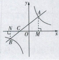 16. 如图,已知点$A(2,3)$和点$B$均在双曲线$y=\frac{k}{x}$上,点$B$的横坐标为$t(t < 0)$,连接$AB$交$x$轴于$C$点.若$C$点的横坐标为$m$,则$t =$