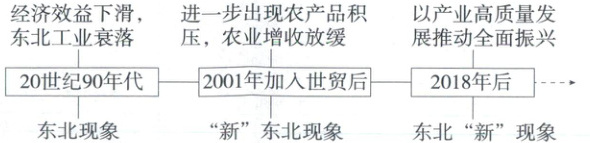 (2025郑州期末)有学者研究表明,20世纪90年代以来,东北地区经济发展先后经历了“东北现象”“新东北现象”和“东北新现象”阶段(如下图)。据此完成9—10题。