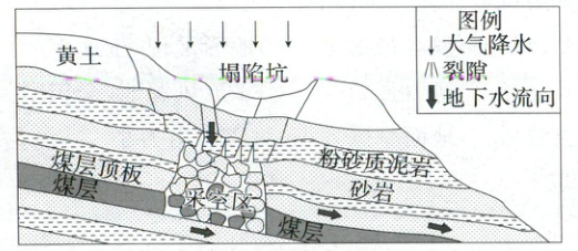 C 读图可知,降落的雨水会经过煤层和采空区填充的煤矸石而受到污染,污染水体下渗到地下水中,导致采空区积水污染严重,所以为解决此问题,采取回填塌陷坑、封堵地裂缝等措施 正确