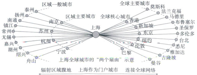(2024济南期中 社会热点)新时代的上海,宏大布局徐徐展开:向东直面广袤太平洋,向西辐射长三角、长江经济带和全国。勾勒一东一西两大“扇面”,全力构建国内大循环的中心节点和国内国际双循环的战略链接(下图)。2023年美国莫德纳药业落户上海,从签约到开工,仅用三个月,创造了“莫德纳速度”。据此完成8—9题。