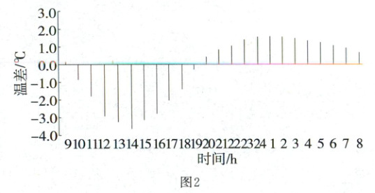 陕西省紫阳县地处秦岭以南、汉江之滨,板岩资源丰富。板岩硬度适中、分层结构,导热性和透水性差。当地人用石块垒墙,用树木檩椽制成屋架,然后再用山坡上开采的不规则的薄石板,错落有致地搭放在椽子上做房瓦,被称为“石板房”(图1)。石板房结实耐用,冬暖夏凉,具有很好的生态适应性。如今,百年石板房正在消失,取而代之的现代建筑迅速增多。图2示意夏季晴天石板房卧室南墙内表面温度与室外气温差值随时间变化。