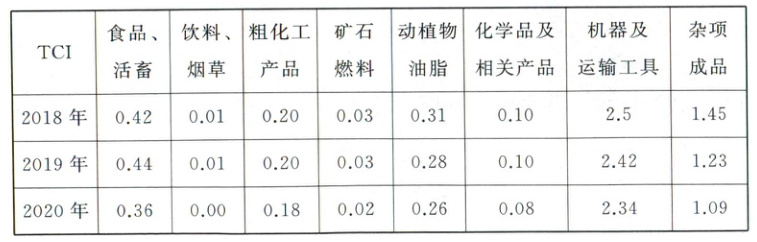 17.A(国际合作)据材料可知,TCI指数大于1,说明两国之间的商贸交往异常频繁,关系十分密切,贸易互补性相当强。在给出的选项中,机器及运输工具的TCI指数在2018年、2019年、2020年分别为2.5、2.42、2.34,均大于1且数值相对较高,说明在该贸易类型上,中国与菲律宾商贸交往频繁,贸易互补性强,合作前景最好,A正确。