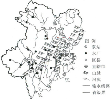(1)读图可知,该区域多山地丘陵,地形崎岖,地表径流流失速度快,难以存留;据材料“渝西地区喀斯特地貌广布”可知,该区域为喀斯特地貌,地表水易渗漏,不易存留;该区域以平行岭谷为主,缺少建设大型控制水库的条件,储水困难,因而该区域工程性缺水较严重。