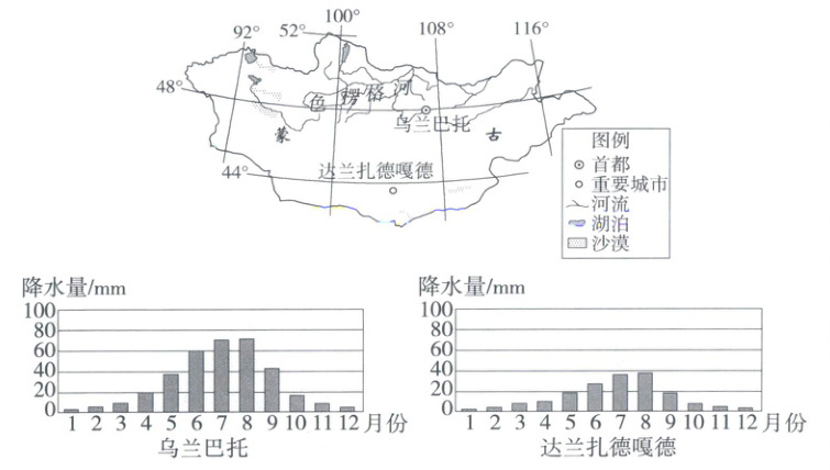 (2025 北京西城区期末 社会热点)近年来,受自然气候变化和人为因素双重影响,蒙古国生态环境恶化问题日益严峻。为应对这一危机,蒙古国 2021 年正式启动规模宏大的“十亿棵树计划”,该计划所需部分苗木来自我国锡林郭勒盟。2023 年 9 月,中蒙荒漠化防治合作中心在乌兰巴托正式揭牌成立。据此完成 1—2 题。
