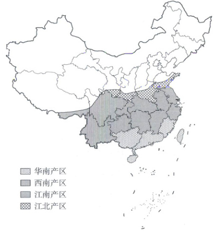 (2025郑州期末)下图为我国茶树主产区分布示意图。据此完成1—2题。