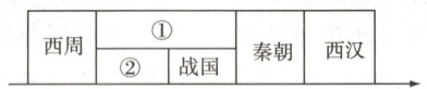 (1)材料一示意图中的①②处应该填写的朝代(时期)分别是什么?结合所学知识回答西周的建立者是谁。(4分)