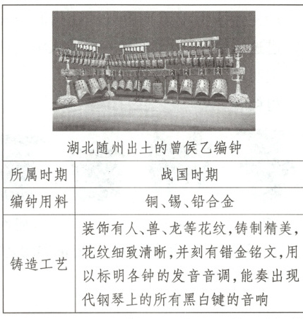 (2)铸造编钟的原料是铜、锡、铅合金,编钟能奏出现代钢琴上的所有黑白键的音响。