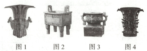 (1)图1:四羊方尊;图2:司母戊鼎;图3:利簋;图4:何尊。