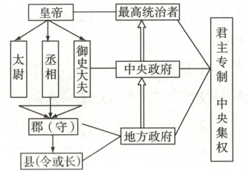 (2)总揽全国的政治、军事、财政等一切大权,拥有至高无上的权威。丞相掌管行政,太尉掌管军事,御史大夫掌管监察事务。