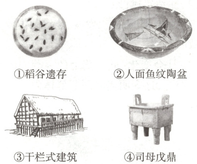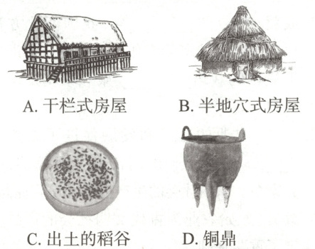 4. 在下列图片中,反映长江流域河姆渡人文化特征的是(