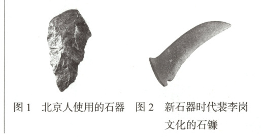 (1)图1是打制;图2是磨制。说明了社会生产力的进步。