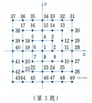 3. 将$1$,$2$,$3$,$4·s·s$按图中的方式排列,则每一个正整数对应一个坐标。如“$1$”对应的坐标是$(0,0)$,“$3$”对应的坐标为$(1,1)$,则数$2004$对应的坐标为
