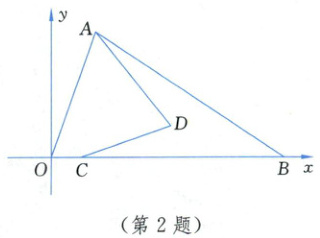 2. 如图,点$O$是坐标原点,折线$ADC$将$\triangle AOB$的面积二等分。已知点$A(3,8)$,$D(8,2)$,$C(2,0)$,则点$B$的坐标为