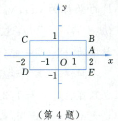 4. 如图,长方形$BCDE$的各边分别平行于$x$轴或$y$轴,物体甲和物体乙由点$A(2,0)$同时出发,沿长方形$BCDE$的边作环绕运动,物体甲按逆时针方向以每秒$1$个单位长度的速度匀速运动,物体乙按顺时针方向以每秒$2$个单位长度的速度匀速运动,则两个物体开始运动后的第$2012$次相遇地点的坐标为