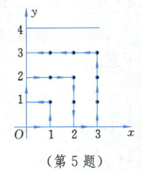 5.D 提示:先观察横坐标与纵坐标相同的点:$(0,0)$粒子运动了0分钟;$(1,1)$粒子运动了$2=(1×2)$分钟,$(2,2)$粒子运动了$6=(2×3)$分钟,$(3,3)$粒子运动了$12=(3×4)$分钟……$(44,44)$点处粒子运动了$44×45 = 1980$分钟.这时粒子将向下运动,从而在运动了1989分钟后,粒子所在位置是$(44,35)$.