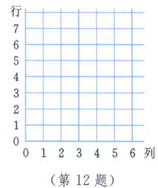12. 如图,$101×7$长方阵,行距和列距都是$1$。第$6$列上(除与第$0$行相交处外),每一个阵点上放有一个靶标,而前$5$列上所有的阵点上都放有障碍物。神枪手站在第$0$行第$0$列的位置,要击中靶标,必须先扫清子弹前进弹道(直线)上的一切障碍物。若神枪手每发子弹都能击中目标,而且每发子弹能击毁且仅能击毁一个障碍物。那么,(1)不需要扫除障碍物就能击中的靶标有多少个?(2)要扫清一个障碍物才能击中的靶标有多少个?