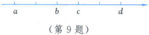 9. 如图,在数轴上有若干个点,每相邻 2 个点之间的距离是一个单位长,有理数 $ a,b,c,d $ 所表示的点是这些点中的 4 个,且在数轴上的位置如图所示,已知 $ 3a = 4b - 3 $,求 $ c + 2d $ 的值.