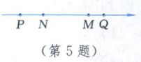 5. 如图,四个有理数 $ m,n,p,q $ 在数轴上对应的点分别为 $ M,N,P,Q $,若 $ n + q = 0 $,则 $ m,n,p,q $ 四个有理数中,绝对值最大的是(