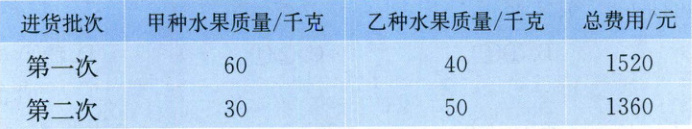 10. 某水果店经销甲、乙两种水果,两次购进水果的情况如下表: