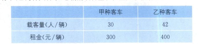 方案一:甲3辆,乙5辆,费用$3×300 + 5×400 = 2900$元;