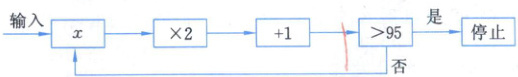 例 2 运行程序如图所示,规定:从“输入一个值$x$”到“结果是否$>95$”为一次程序操作。
