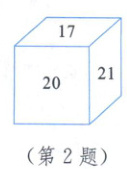 2. 在立方体六个面上标有六个连续整数,且在相对的面上所标的数之和相等,若这个立方体的三个面上所标的数如图所示,那么立方体六个面上所标数之和为(