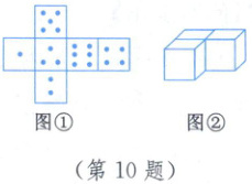 10. 有同样大小的三个立方体骰子,每个骰子的展开图如图①所示,如果把 1 个骰子点数是 4 的一面放在桌子上,那么其他 5 个可以看得到的面上的数字的和是 17。现在把这 3 个骰子放在桌子上(如图②),凡是能看得到的点数之和最大是