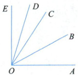 如图,已知$\angle BOD = 45^{\circ}$,$\angle AOE = 90^{\circ}$,那么不大于 $90^{\circ}$ 的角有,它们的度数之和是。