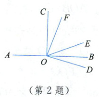 2. 如图,$O$ 为直线 $AB$ 上一点,$\angle AOC = 90^{\circ}$,$OB$ 平分$\angle DOE$,$OE$ 平分$\angle DOF$,则下列结论:①图中互余的角有 $2$ 对;②$\angle FOD = 3\angle BOE$;③$\angle COD$ 与$\angle COE$ 互补;④如果$\angle AOF = 120^{\circ}$,则$\angle COE = 60^{\circ}$。其中错误结论的个数是(