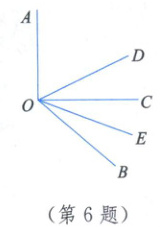 6. 如图,$\angle AOB$ 是钝角,$OC$,$OD$,$OE$ 是三条射线,若 $OC \perp OA$,$OD$ 平分$\angle AOB$,$OE$ 平分$\angle BOC$,那么$\angle DOE$ 的度数是