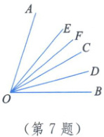 7. 如图,射线 $OC$,$OD$,$OE$,$OF$ 分别平分$\angle AOB$,$\angle COB$,$\angle AOC$,$\angle EOC$,若$\angle FOD = 24^{\circ}$,则$\angle AOB = $