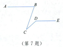 7. 如图,已知 AB//DE,∠ABC = 70°,∠CDE = 140°,则∠BCD 的度数为_ 。