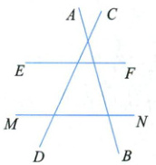 若平行直线 EF,MN 与相交直线 AB,CD 相交成如图所示的图形,则共得同旁内角().