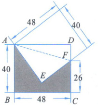 如图,两张 $48×40$ 的长方形纸片有一个顶点重合,重叠放置的尺寸如图所示,则图中阴影部分的面积为.