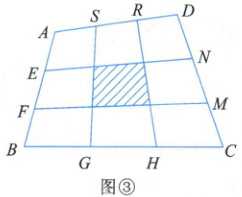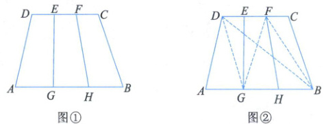 如图①,已知四边形 $ABCD$ 中,$E$,$F$ 是 $DC$ 边的三等分点,$G$,$H$ 是 $AB$ 边的三等分点.
