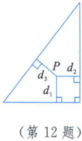 12.如图所示,在△ABC中,∠C = 90°,BC = 5,AC = 12,BA = 13,P到BC,CA,AB的距离分别为d₁,d₂,d₃,连接PA,PB,PC,由三角形的面积公式得: