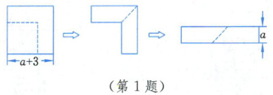 1. 如图,从边长为 $(a + 3)$ 的正方形纸片中剪去一个边长为 3 的正方形,剩余部分沿虚线又剪拼成一个如图所示的矩形(不重叠无缝隙),则拼成的矩形的一边长为 $a$,另一边长是