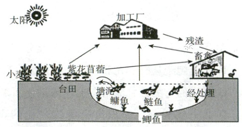 环境。(2)台田上的小麦和紫花苜蓿,属于该生态系统组成成分中的
