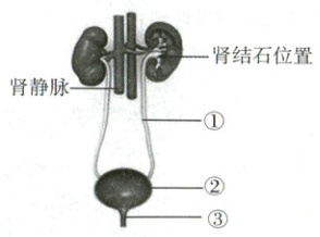 (填图中序号)运输到膀胱中暂时储存,后经尿道排出体外。为了防止肾结石复发,医生给该患者的建议是多喝水、适当运动、不憋尿。