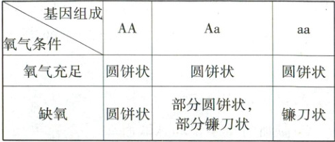 。(2)在不同的氧气条件下,基因组成为aa的个体的红细胞形态不同,这说明红细胞形态是由基因组成和