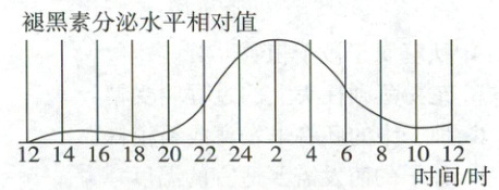 19. 褪黑素是一种可调整睡眠的激素。如图是人体一昼夜(当日12时至次日12时)褪黑素分泌水平图,研究表明,蓝光对褪黑素分泌有较强的抑制作用。下列说法错误的是 (