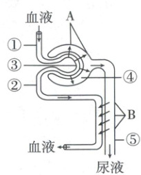 B.血液流经③肾小球时会通过滤过作用到达④肾小囊腔形成原尿