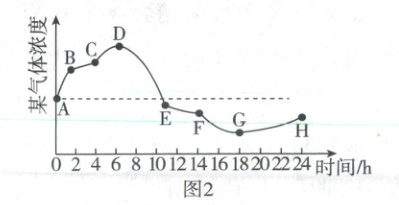 (3)技术员对密闭大棚内某气体浓度进行监测,图2是从0时开始持续24小时测得的变化情况,据图判断该气体是
