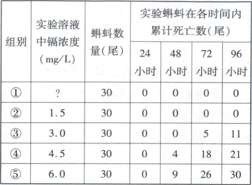 (2)第①组作为对照组,不进行变量处理,表中“?”处实验溶液中镉浓度应为0mg/L。
